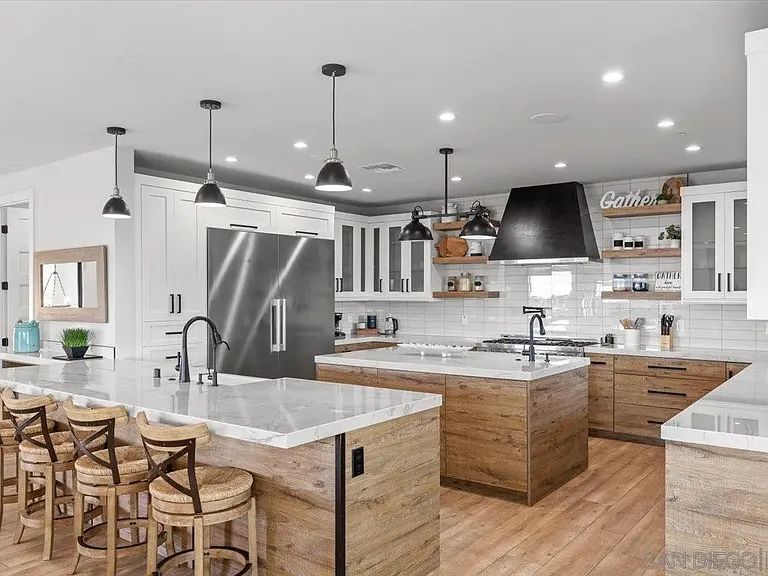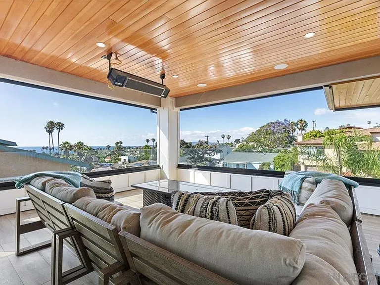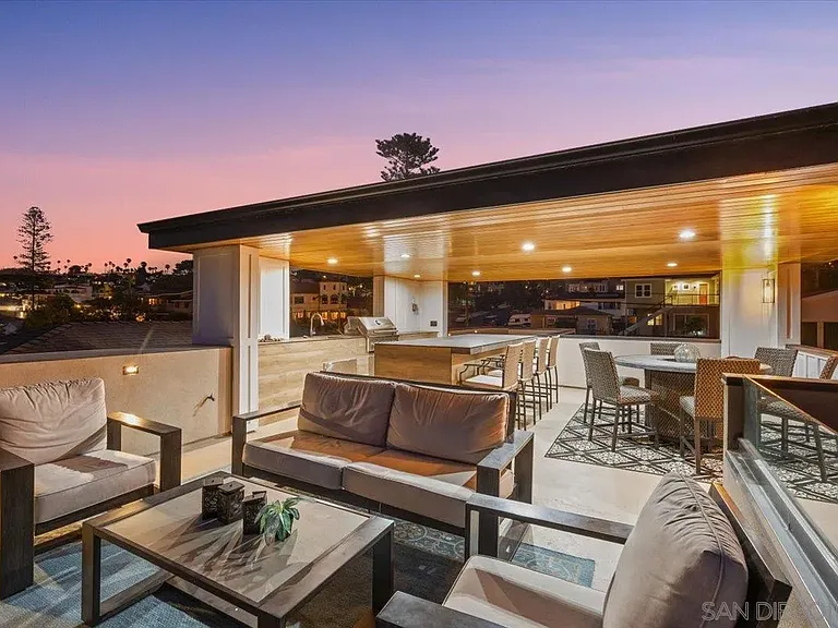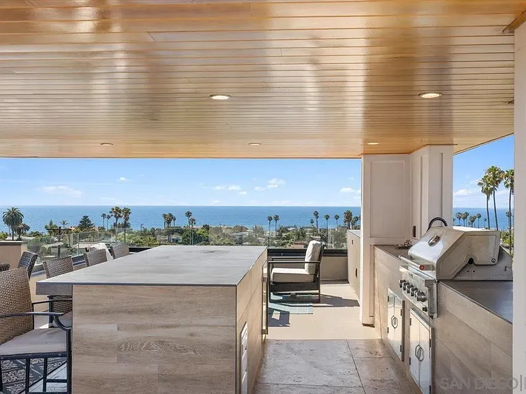 Experience unmatched coastal living in this stunning, fully rebuilt Sunset Cliffs home, showcasing panoramic ocean views from nearly every level. Reimagined from top to bottom and completed in 2021 with high-end custom finishes, this residence feels brand new — offering the ultimate blend of modern design and laid-back coastal style. Step into a bright, open-concept living space where the designer kitchen flows effortlessly into the dining and living areas, all framed by walls of glass that capture the endless horizon beyond. The sleek chef’s kitchen features Cleaf-finished cabinetry and luxury appliances, perfect for everyday living and entertaining. Designed for comfort and privacy, each of the four spacious bedrooms is its own suite with a private bathroom, ideal for family, guests, or working from home. The primary retreat is truly special, with a spa-like bath, generous walk-in closet, and ocean views to wake up to every morning. Enjoy seamless indoor-outdoor living with multiple covered decks, a private jacuzzi, and an expansive 725 sq. ft. rooftop deck with a full outdoor kitchen — the perfect spot to watch sunsets melt into the Pacific. Additional upgrades include 33 owned solar panels, a whole-house water filtration system, and a rare 3-car garage — all wrapped into a low-maintenance, move-in-ready coastal haven. This is your chance to own a modern masterpiece with million-dollar views in the heart of Sunset Cliffs — where every day feels like a vacation.